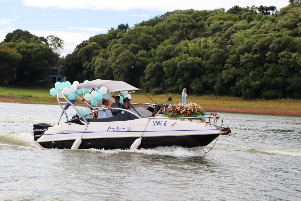 O silêncio das primeiras horas da manhã foi rompido pelo som dos motores das embarcações, pelo canto das orações e pelo brilho da imagem de Nossa Senhora da Saúde refletido nas águas verde-água do Alagado do Passo Real. No domingo, 15 de fevereiro de 2026, o lago se transformou em altar, caminho e encontro de gerações durante a 29ª Romaria Fluvial e Terrestre promovida pela Comunidade Católica de Sede Aurora, em Quinze de Novembro.