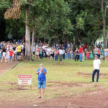 Um dos momentos simbólicos da manhã foi a tradicional soltura de alevinos nas águas do alagado, gesto que une fé e cuidado com a vida. Durante o ato, o prefeito Marcos Petri destacou o significado da barragem para o município. “Quero saudar todos os moradores aqui do condomínio Beco do Sol, o mais antigo do município. Se lá no final dos anos 60 a barragem trouxe dificuldades, hoje ela representa riqueza, turismo e qualidade de vida para Quinze de Novembro”, afirmou.